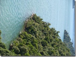 After a lovely breakfast of toast with scrambled eggs and smoked salmon (all ingredients supplied by the cottage!) we checked out and drove up north again to the Marlborough Sounds. This day Ryan was the navigator and I was the driver! Quite a change of pace. Driving through the mountains and the sounds was rather challenging. After a while I figured it was best to treat the road like a bumper car set up – just keep rolling the steering wheel left and right and go with the flow.